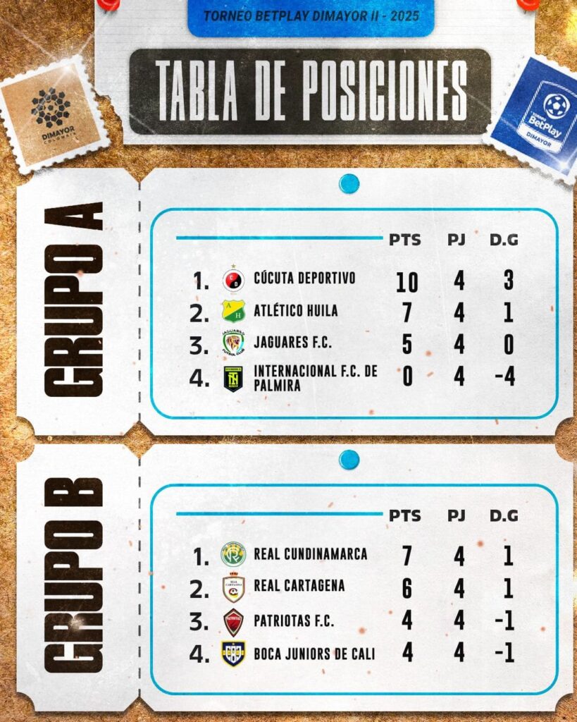 Los cuadrangulares mantienen viva la emoción del Torneo BetPlay Dimayor II, con varios equipos demostrando nivel competitivo y ambición. Mientras Cúcuta Deportivo destaca como el más firme en el Grupo A, en el Grupo B la disputa se mantiene abierta entre los dos líderes y los equipos que vienen detrás, presagiando un cierre vibrante en busca del ascenso.