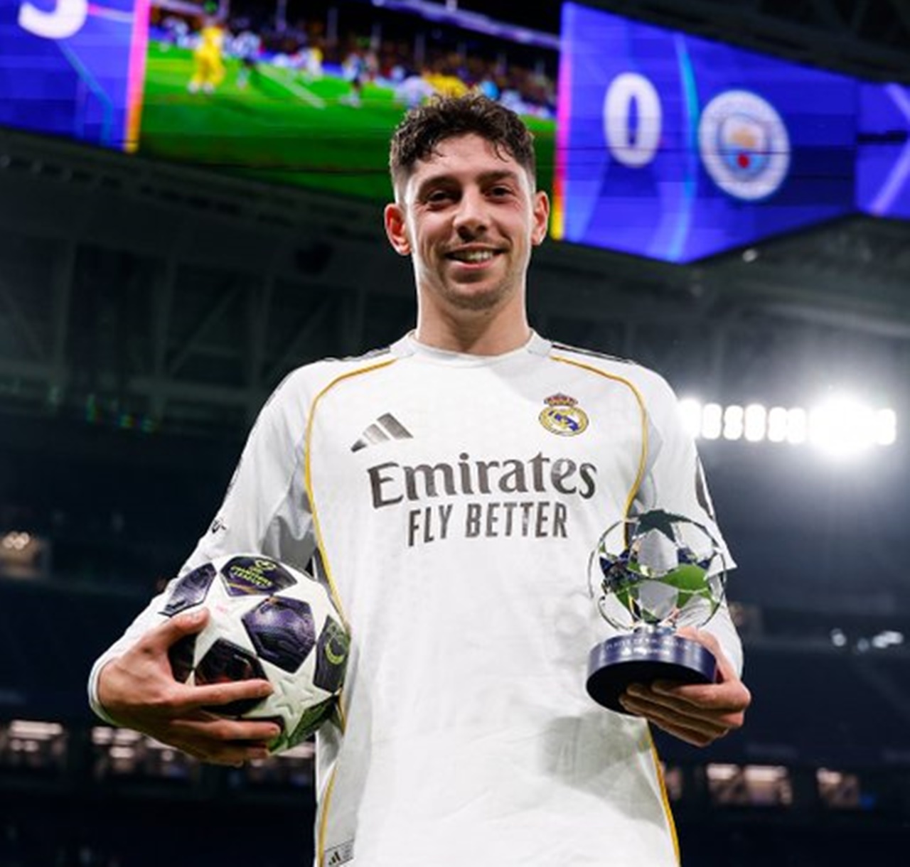 El Real Madrid derrotó al Manchester City en una gran noche europea en el Bernabéu y tomó ventaja en la eliminatoria de octavos de final de la Champions League, que se decidirá dentro de seis días en el Etihad Stadium. Nuestro equipo exhibió un nivel espectacular, pleno de compromiso, y decidió el partido en 23 minutos mágicos con un futbolista estelar: Federico Valverde. El uruguayo marcó tres golazos y firmó una actuación inolvidable para la afición madridista.