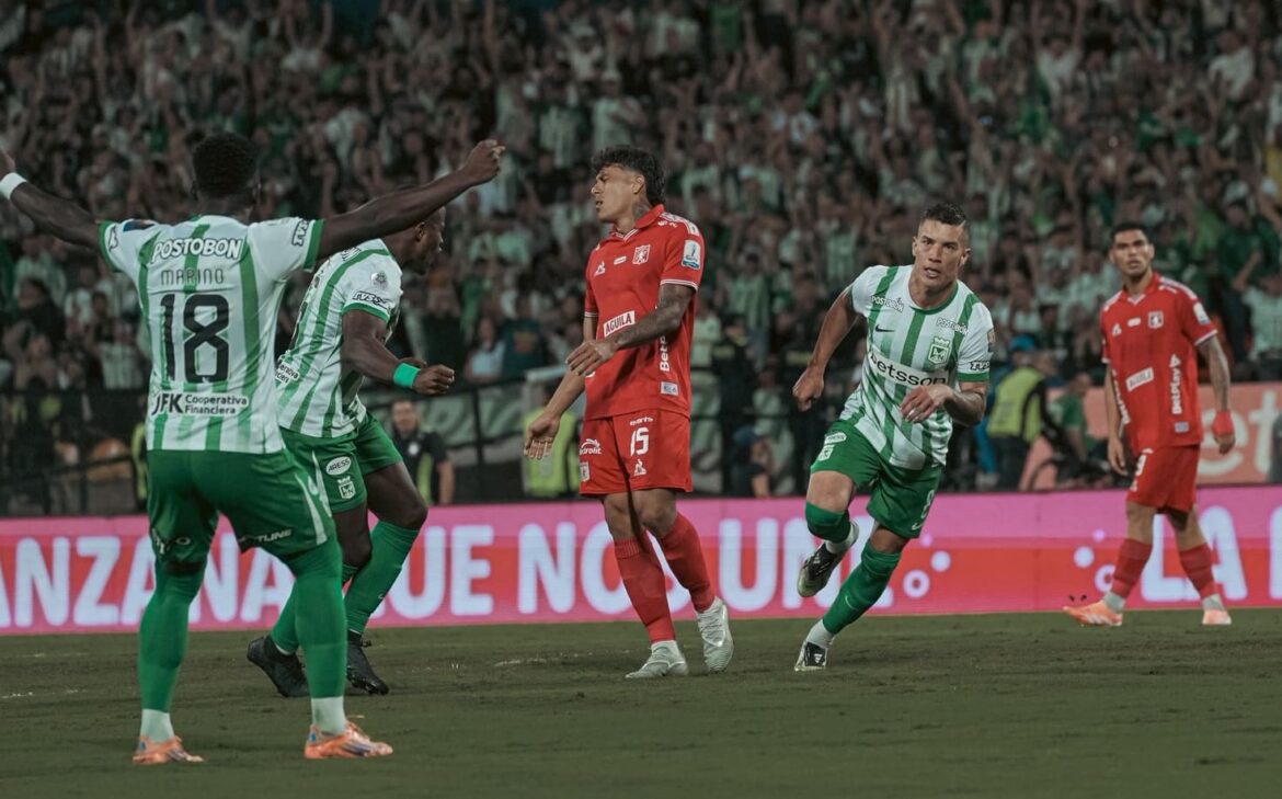 Pero en los clásicos, los detalles inclinan la balanza, y esta vez el error fue costoso. Cristian Tovar intentó salir jugando desde el fondo con Luis Paz, pero la jugada exigió más precisión de la que ofreció. Mateus Uribe, incisivo y líder en la mitad, leyó la acción, robó la pelota con autoridad y encendió la mecha verdolaga. El balón viajó a los pies de Alfredo Morelos, que con visión levantó la cabeza y asistió a Juan Bauzá, quien definió de primera al ángulo, imposible para Soto. Golazo y estallido en Medellín: Nacional golpeaba primero.