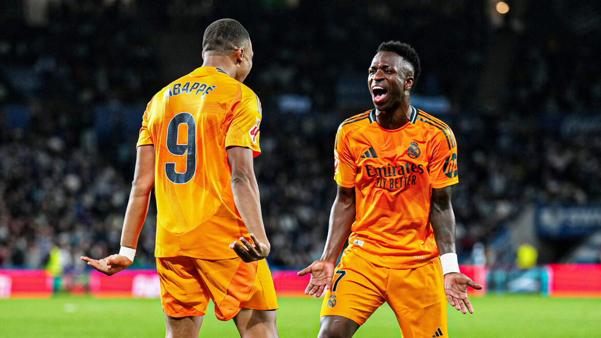 Sufriendo (los locales pegaron 3 balones al poste), sin brillo, con momentos graves de descontrol y gracias a un par de anotaciones de penal, el Real Madrid venció a la Real Sociedad en Anoeta. Lejos de ser un triunfo lindo y dominante, pero sortearon una de las visitas más complicadas en la Liga de España. Y lo hicieron sin jugadores clave, como Bellingham, Tchouameni y el propio Camavinga. Vinicius Júnior y Kylian Mbappé se encargaron de marcar los dos penales que se pitaron.