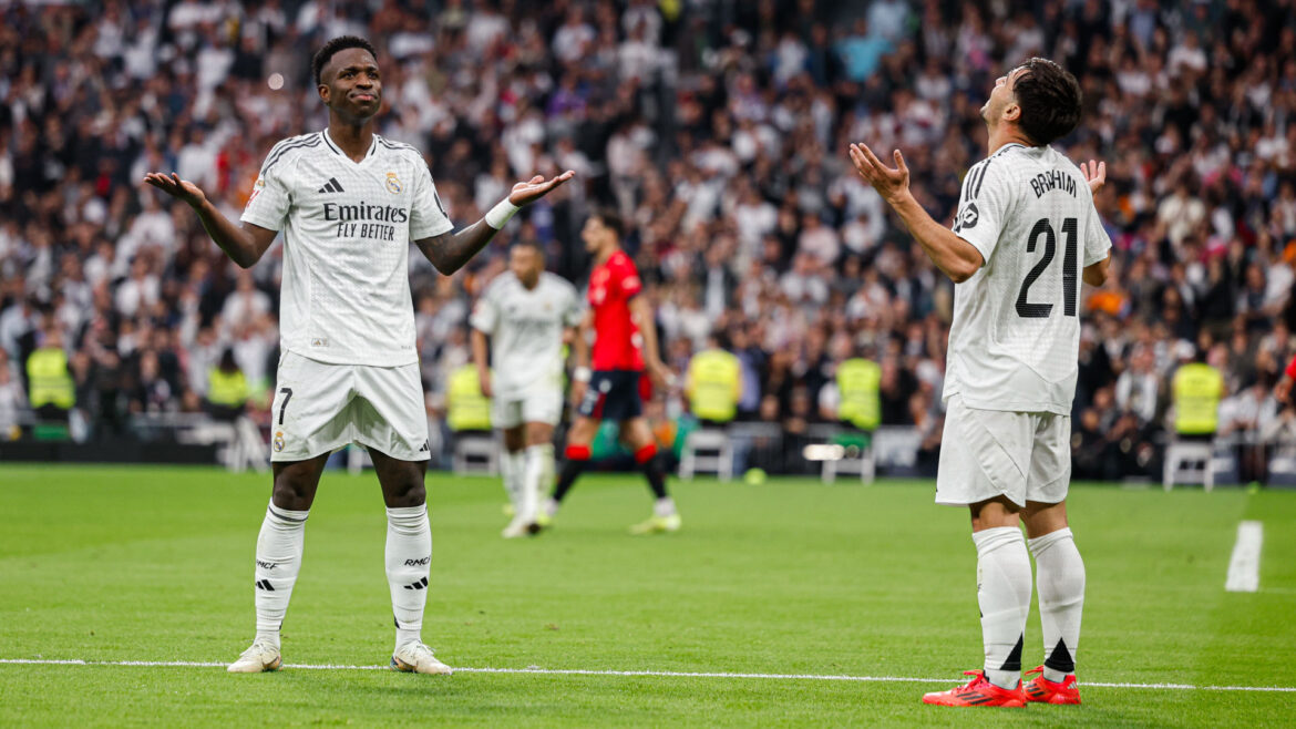 El Real Madrid (2º) aparcó provisionalmente la crisis provocada por los malos resultados con una goleada 4-0 a Osasuna (5º), en la que Vinicius marcó un triplete, pero perdió a Eder Militao, víctima de una grave lesión de rodilla.